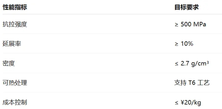 “我们需要开发一种高强度、轻质、具备良好延展性的铝合金,用于新能源汽车底盘连接件。”