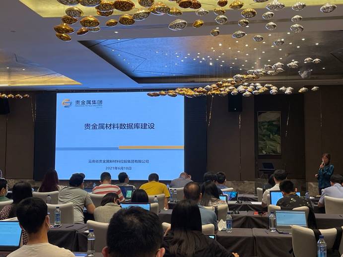 随后,贵金属集团张爱敏研究员作为MatAi邀请的用户代表介绍了贵金属材料基因工程重大专项及贵金属材料专业数据库建设项目的概况。该项目是云南省稀贵金属材料基因工程重大专项2020年立项,由贵金属集团牵头,联合其下属子公司、MatAi、上海交通大学、西北工业大学、中南大学、天津大学、哈尔滨工业大学、东北大学、昆明理工大学、云南大学、华中科技大学、上海微系统所等二十余家院所、高校和企业共建。其中MatAi承担了关键的贵金属材料专业数据库与数据采集处理系统开发工作。