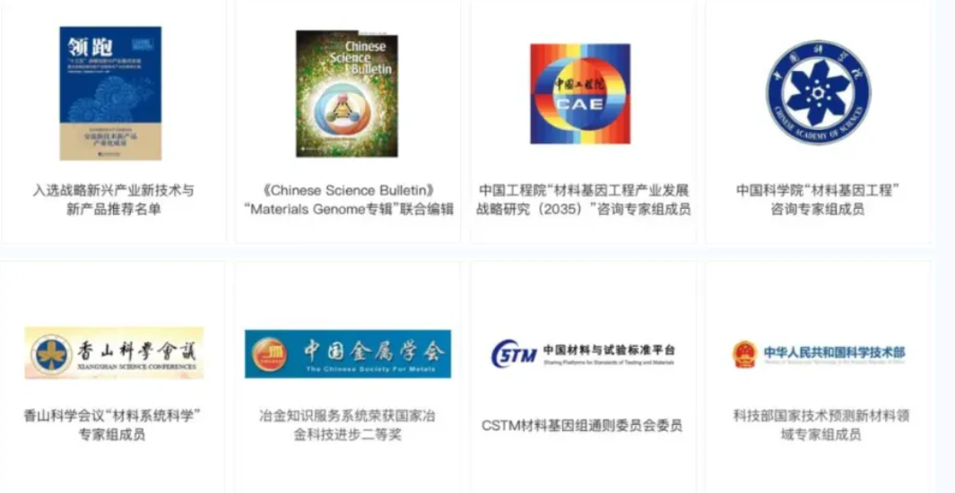MatAi 是科技部 国家技术预测新材料领域专家组成员、中国科学院“材料基因组工程”咨询专家组成员、中国工程院“战略新兴产业”咨询专家组成员、CSTM材料基因组通则委员会成员、中国材料研究学会青年委员会理事单位、四川软件行业协会副理事长单位、四川省高科技产业化协会副理事长单位、《Chinese Science Bulletin》材料基因组专辑联合编辑,入选发改委战略新兴产业新技术与新产品推荐名单。