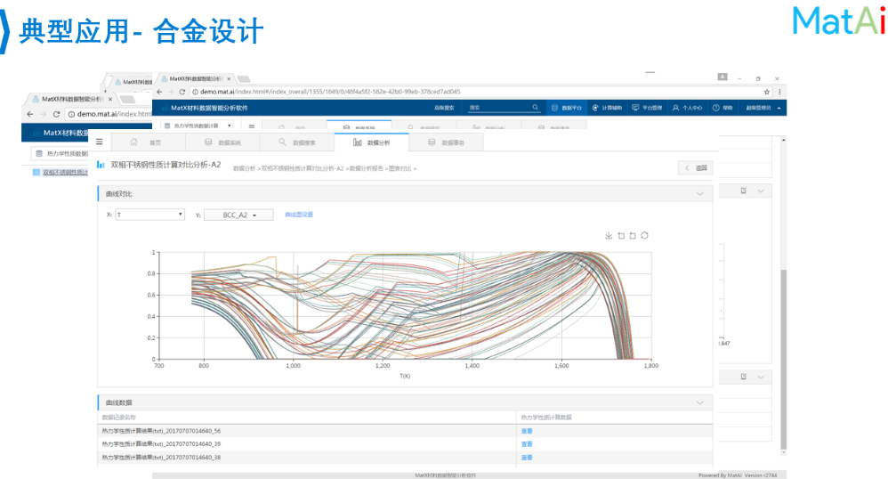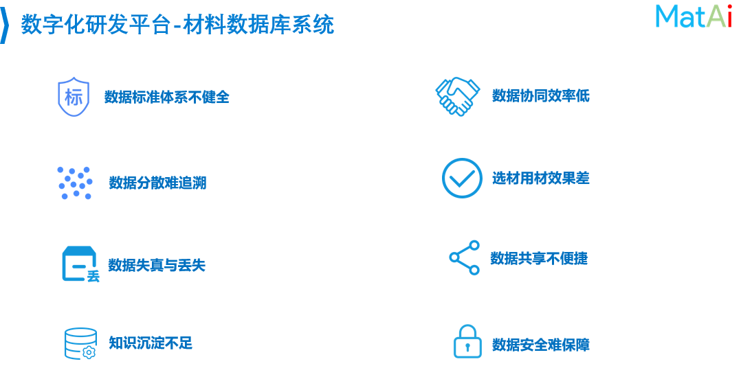 MatAi的报告以“低成本与高回报:材料数字化研发平台的建立与应用”为主题,首先介绍了材料信息学与材料基因组的背景——21世纪,科学研究逐渐进入数据驱动时代,依赖现代计算机强大的计算能力和日益完善的数据挖掘算法,“试错法”的材料研发模式正逐步转向“大数据分析”的研发模式。从“材料大数据”中学习和预测材料的成分、工艺对材料的结构和性能的定量影响规律,也就是决定材料性能的“材料基因”。因此,一个具备全生命周期数据集成和应用的材料数据库的构建,实现将海量、多源、异构、实时产生的材料数据集成统一管理、分析和应用,并整合各类数据深度应用工具,充分挖掘数据中的规律信息,将为新产品研发、工艺改造和材料应用评价决策提供数据支撑。